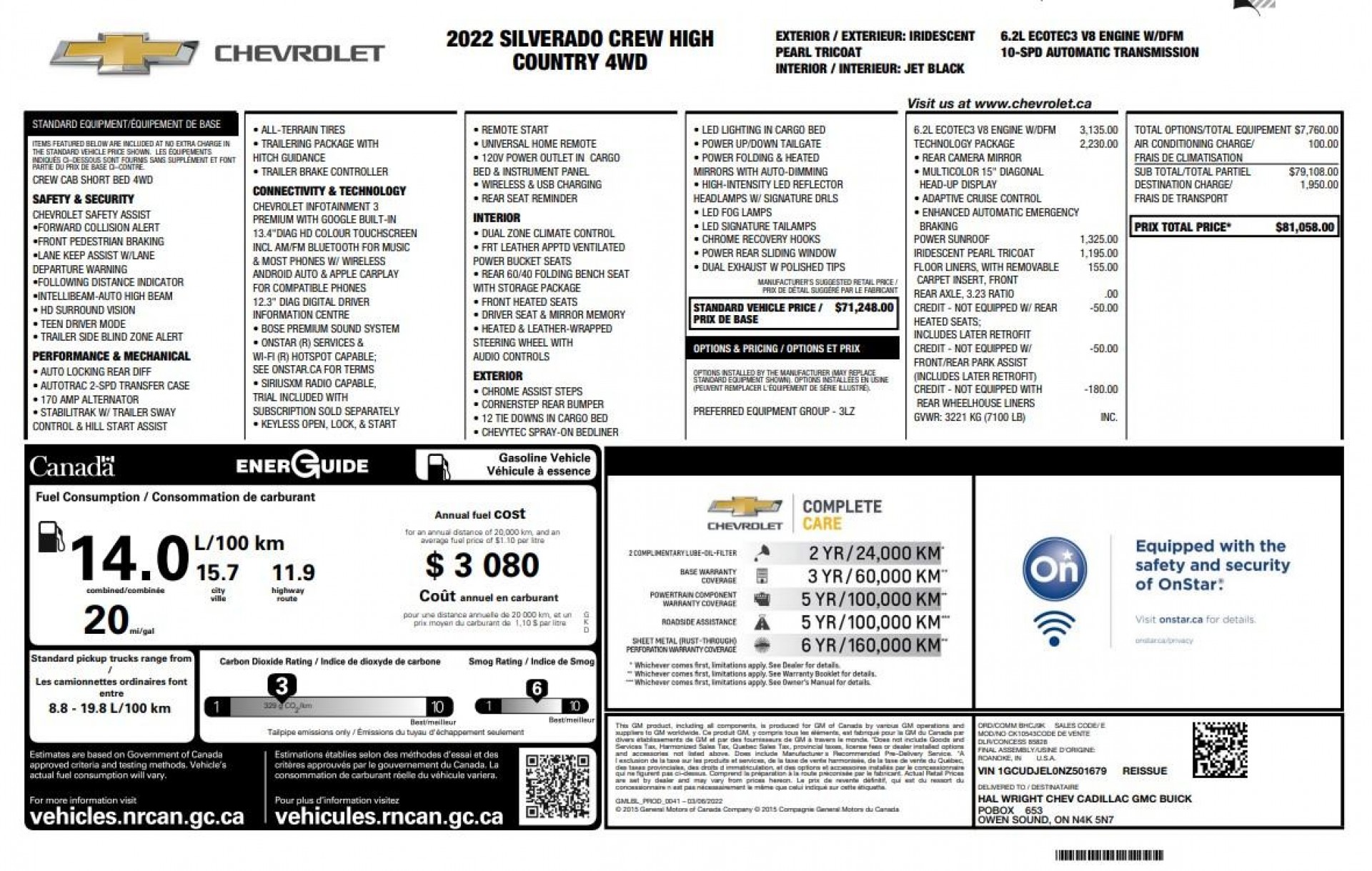2022 CHEVROLET SILVERADO K1500 HIGH COUNTRY 4X4