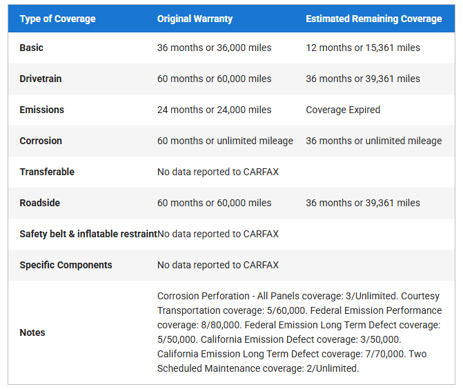 REMAINING FACTORY WARRANTY